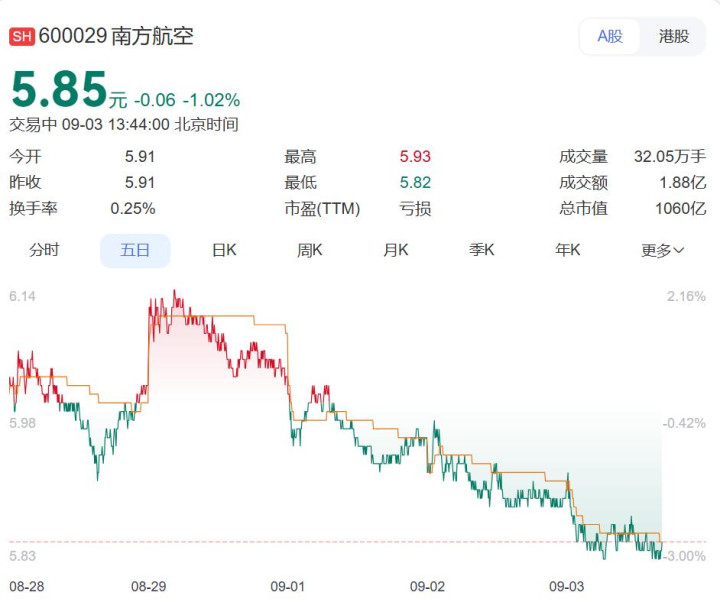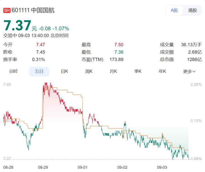 股价方面,近期三大航股价均表现疲软,9月3日,三大航齐跌超1%。年初至今,尽管大盘整体上扬,但三大航股价均不同程度下跌。